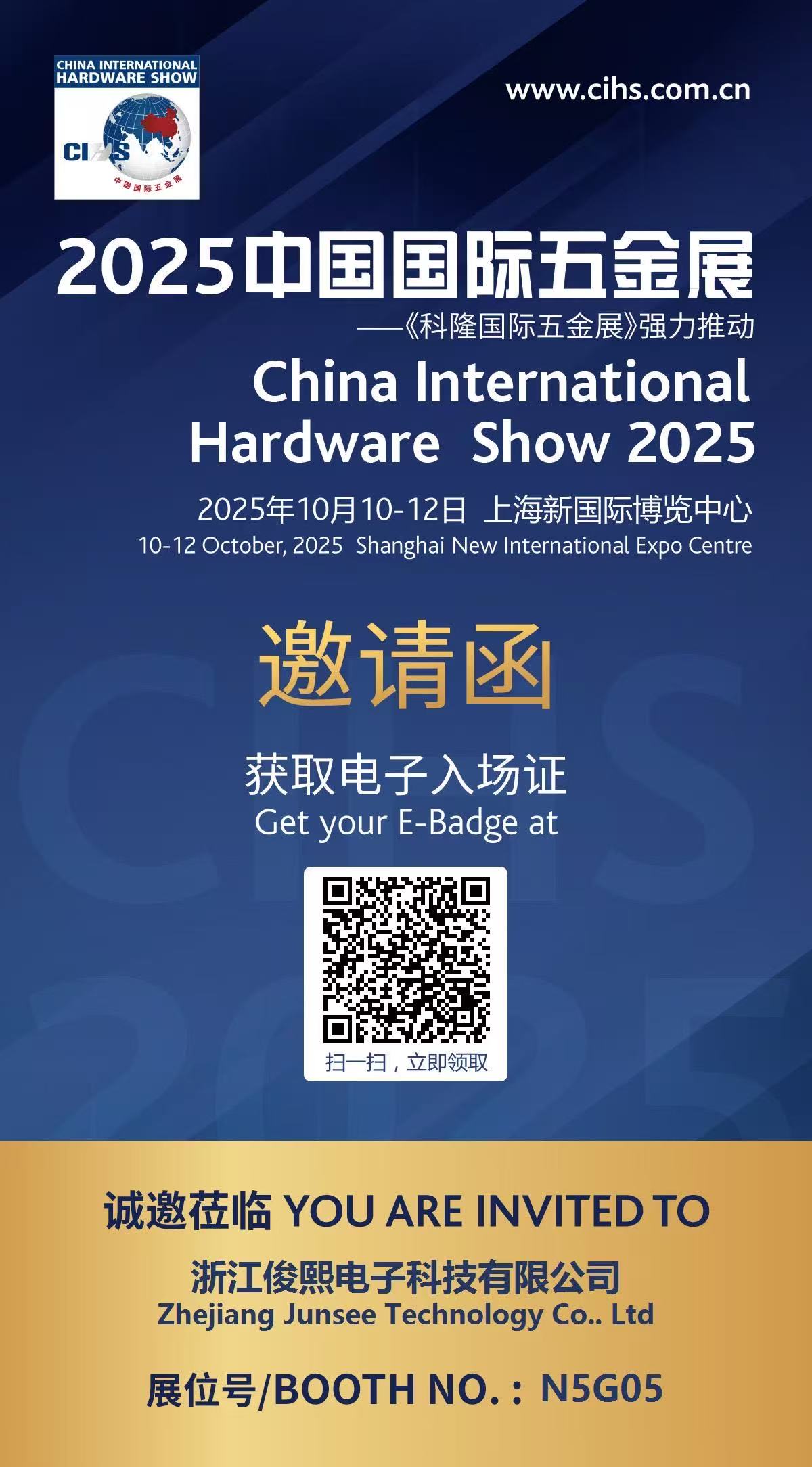 [2025-10-10-12] – Junsee is thrilled to announce its participation in the prestigious 2025 China International Hardware Show in Shanghai. As a dedicated innovator in industrial safety and equipment, we invite you to visit our booth and explore our cutting-edge range of products, designed to enhance workplace safety, boost productivity, and ensure unparalleled reliability for professionals across the globe.